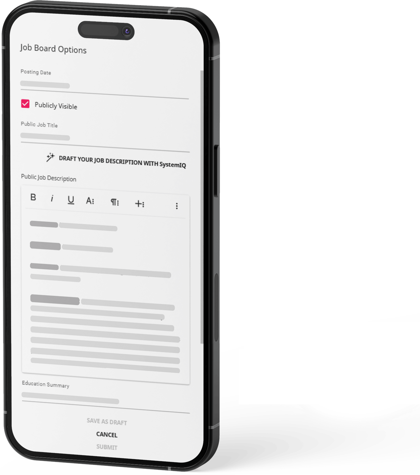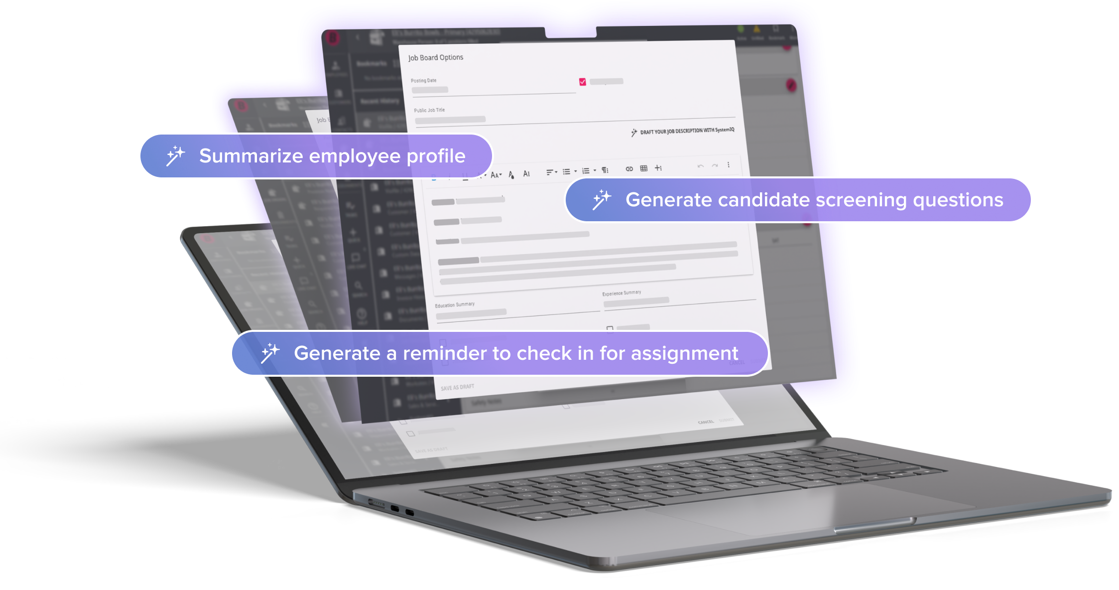 SystemIQ is trained on the language of the staffing industry, for the staffing industry. Enhance your content at key points in the talent journey based on pre-made prompts for specific use cases.